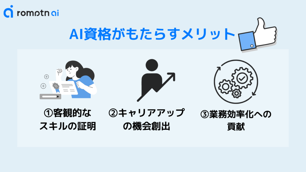 AI資格を取得することで、具体的にどのような恩恵が得られるのでしょうか。ここでは、キャリア形成において重要な3つのメリットを詳しく解説していきます!