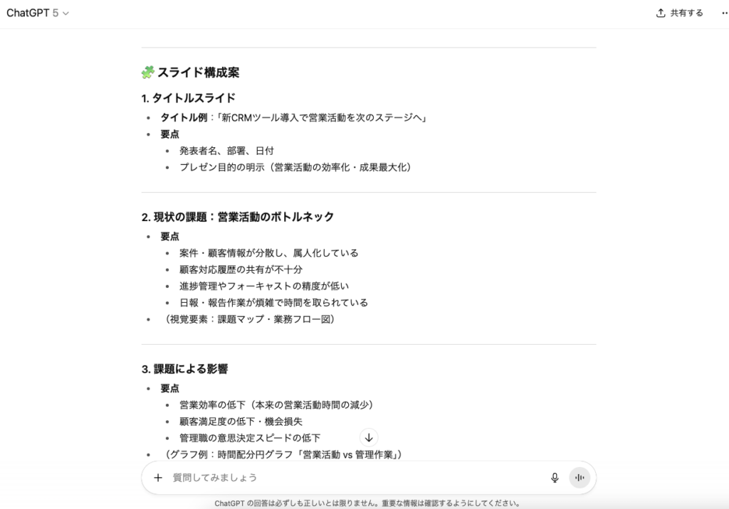 ChatGPTが生成したスライドは、あくまで「叩き台」として活用するのが賢明です。