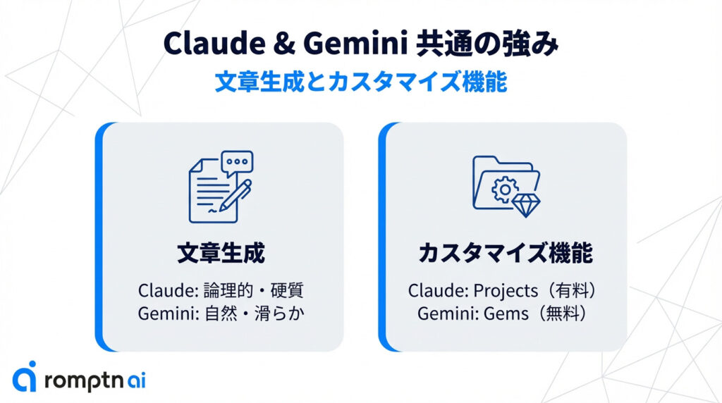 - ClaudeとGeminiで異なる機能