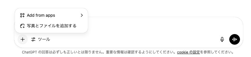 ファイルを直接アップロードすることも可能です。この場合はデスクトップからドラッグ&ドロップでアップロードするか、「+」をクリックして「写真とファイルを追加する」からアップロードしたいファイルを選択してください。あとは「要約して」などプロンプトで指示を出すだけです。