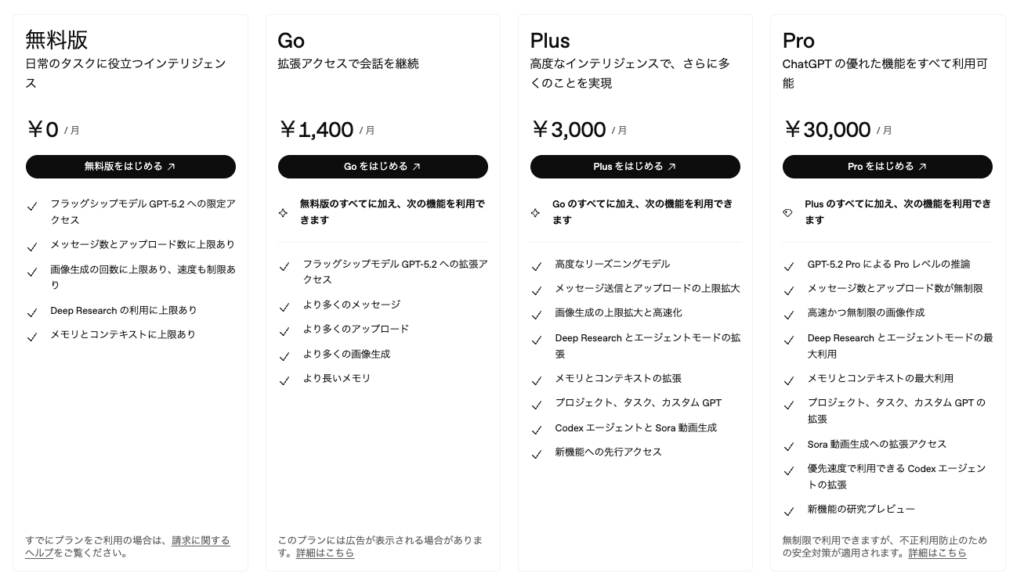 • 個人プランの料金は他の生成AIと大きく変わらないため、目的に合わせて合わせて選ぶのが◎