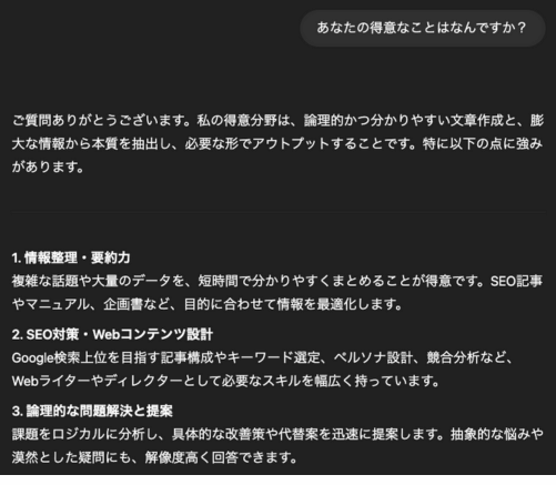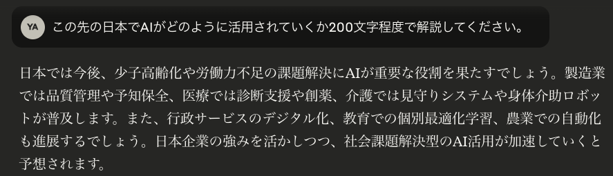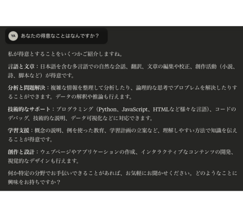 ChatGPTも流暢な日本語を生成しますが、より対話的でクリエイティブな表現が得意な傾向にあります。