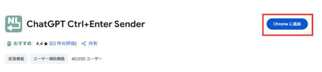 1. Chromeウェブストアで「ChatGPT Ctrl+Enter Sender」のページへ移動。
