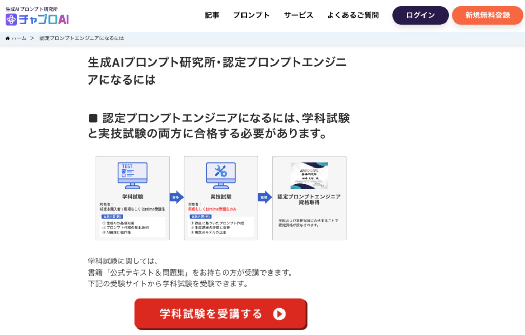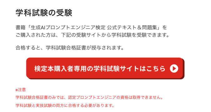 公式ページより、学科試験と実技試験の両方に合格することで「認定プロンプトエンジニア」の資格を取得できます。