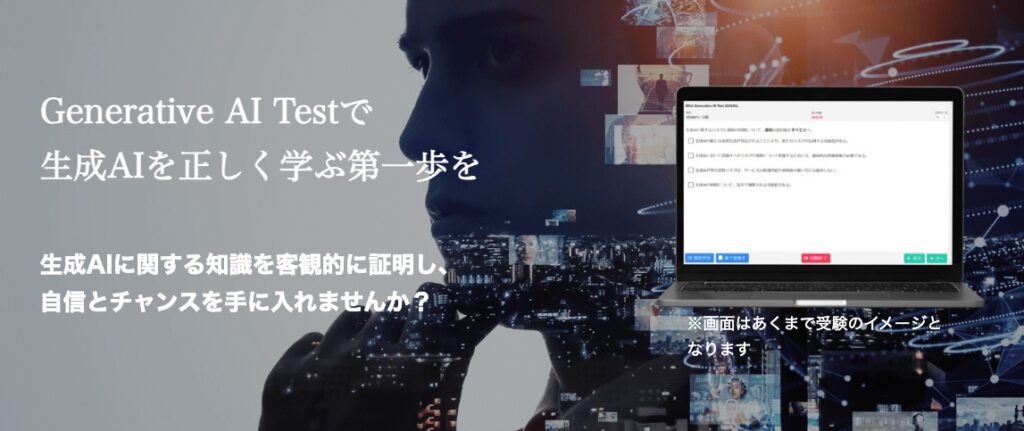 Generative AI Testは、生成AIの知識やリテラシーを確認する「ミニテスト」形式の検定です。G検定・E資格で知られるJDLAが主催しており、わずか2,200円という低価格で手軽に受験できるのが特徴です。