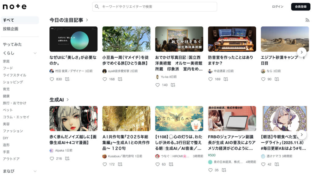 noteの最大の特徴は、ブログやメディア運営と異なり、広告収入を待たずに記事そのものを有料販売できる点です。ChatGPTやClaudeを使って専門知識やノウハウを体系的にまとめることで、読者に価値を提供しながら即座に収益化することができます。