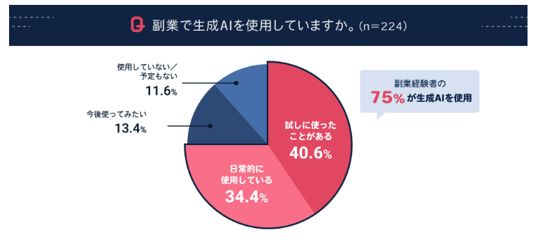 実際の調査からもわかるように、AIを副業に活用することは多くの副業経験者にとって当然のようになってきています。
