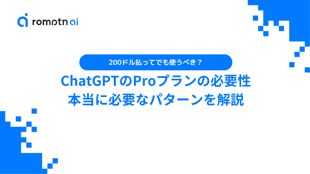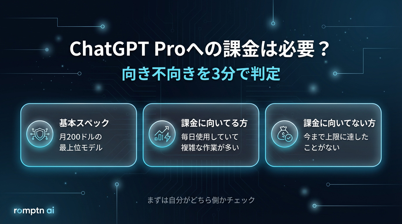ChatGPT Pro(月額200ドル)は「値段は高いけど、Proに課金した方が便利なの?」と迷いやすい最上位プランです。