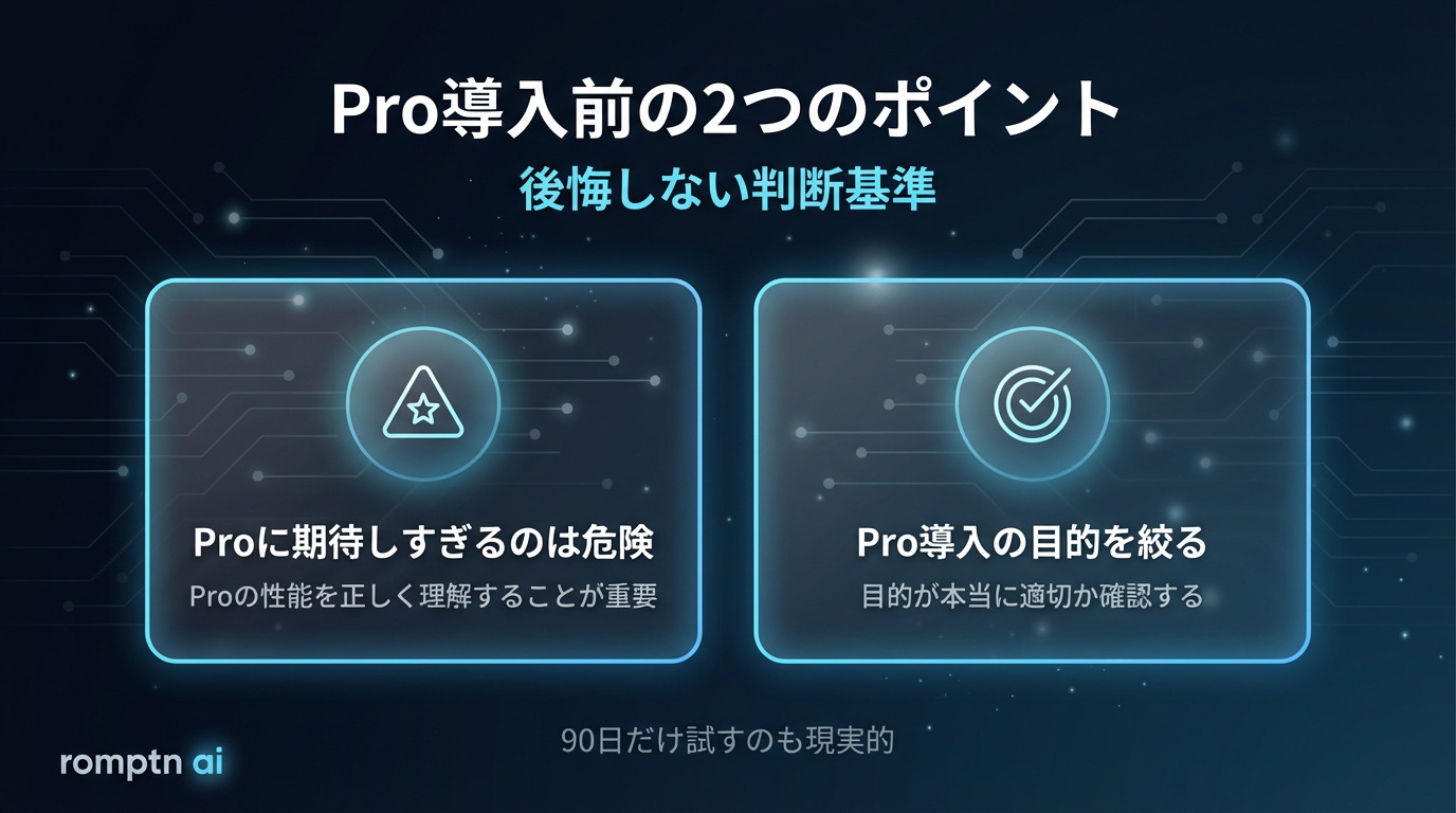 特に誤解されやすいのが、「Proにしたら回答の質が常に劇的に上がる」という期待です。
