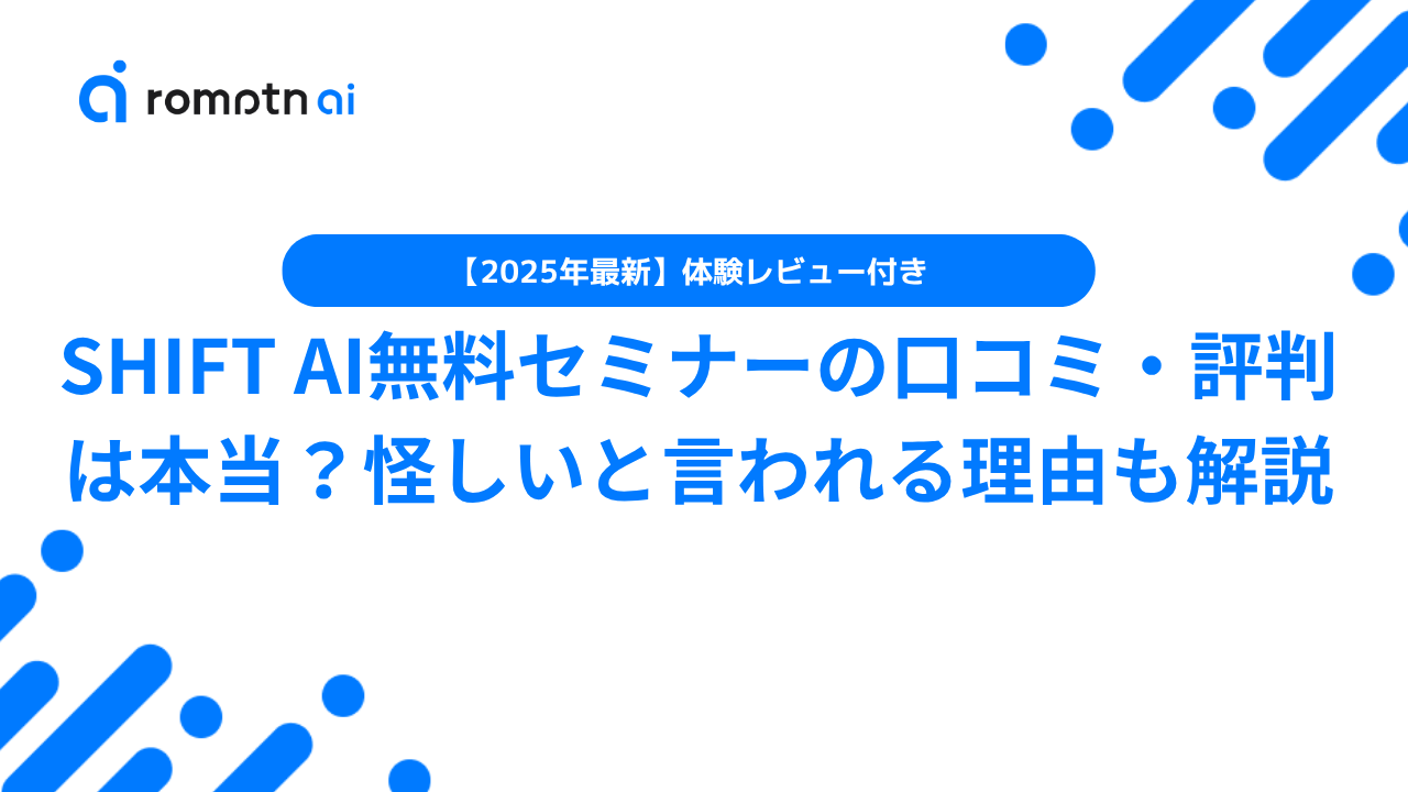 無料AIセミナーを見てみるSHIFT AIの無料セミナーの評判・口コミを徹底検証