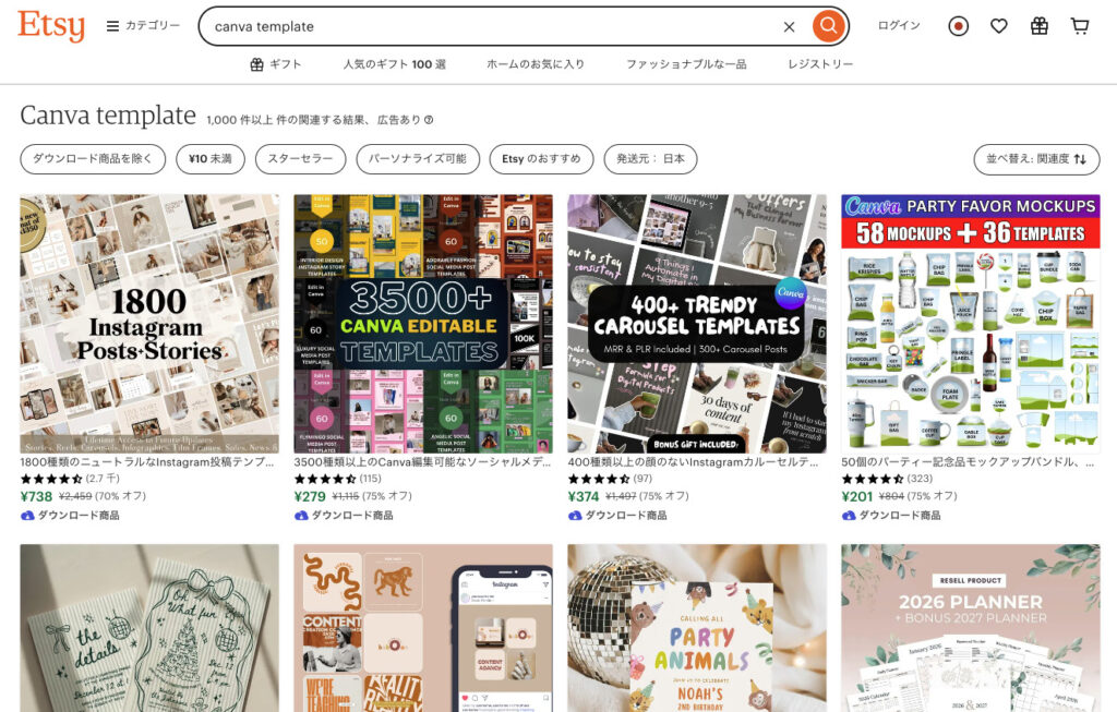 テンプレート販売価格の相場は内容によって異なりますが、概ね500円〜3,000円程度です。販売プラットフォームとしては、海外向けのEtsyや国内向けのminneがあります。