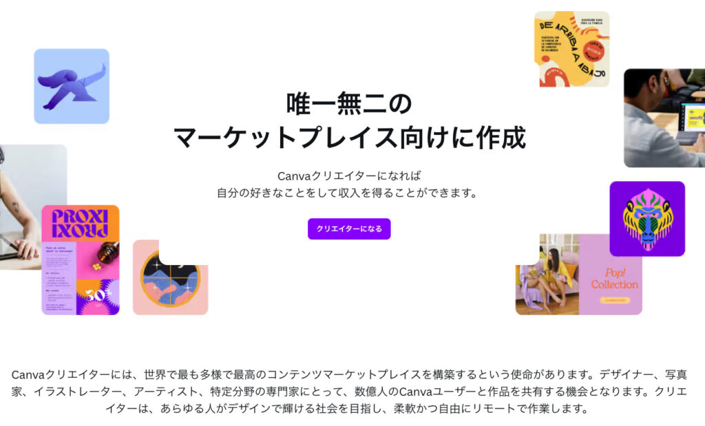Canvaで公式クリエイターになると、テンプレートや素材の提供を通して収入を得ることができます。Canva公式クリエイターとは、Canvaのプラットフォーム上で自分が作成したテンプレートや素材を世界中のユーザーに提供できるプログラムです。