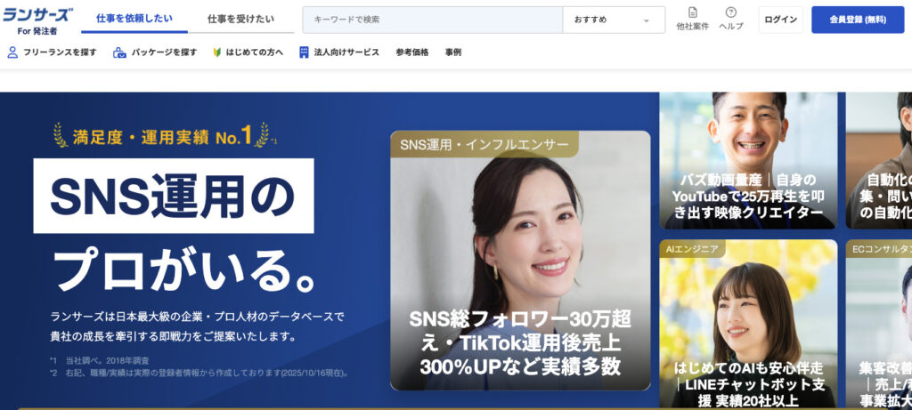 クラウドワークスと並ぶ大手クラウドソーシングサイトです。ランサーズで「canva」と検索すると1,000件近い案件がヒットします。実績を積むと「認定ランサー」に認定され、企業からのスカウトが増えるメリットがあります。