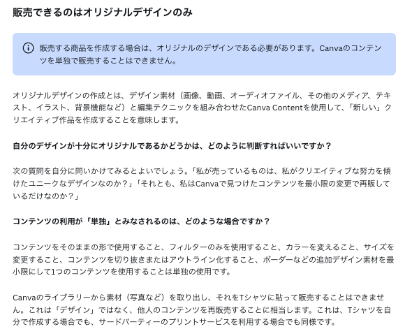 また、Canva Pro限定の素材を使用したデザインをPDF等でそのまま販売する場合は、購入者もCanva Proユーザーである必要があるなど、細かい制限があります。