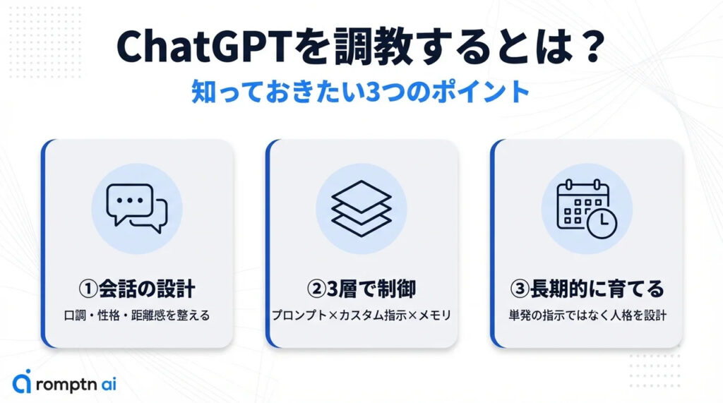 「調教」とはAIを支配する行為ではなく、ChatGPTの口調・性格・距離感を整える方法のこと!
