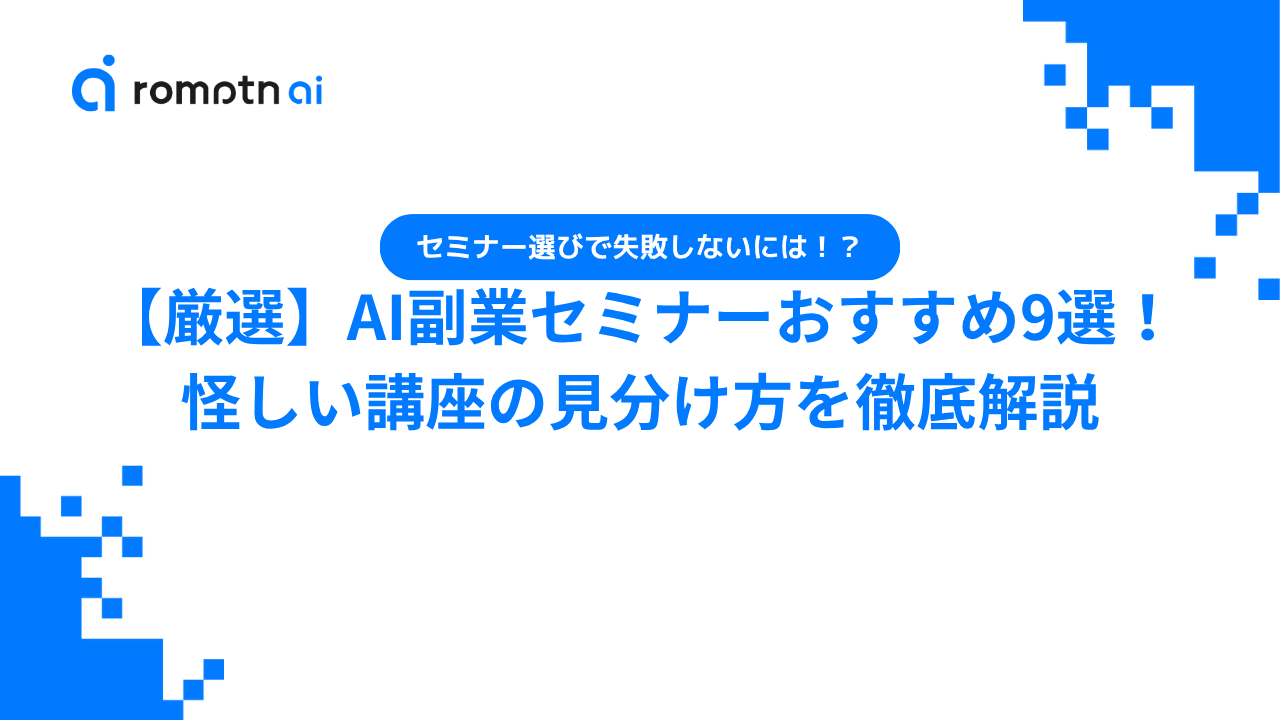 そこで本記事では、2025年に受ける価値のあるAI副業セミナー9選を厳選し、最新情報をもとに怪しい講座の見分け方や失敗しない選び方まで徹底的に解説します。