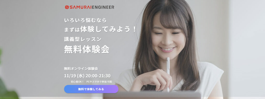 侍エンジニアは、プログラミングスクールとして豊富な実績があり、無料体験会はAIスキルに加えて、それを収益化する手段を学びたい方へ特におすすめです。