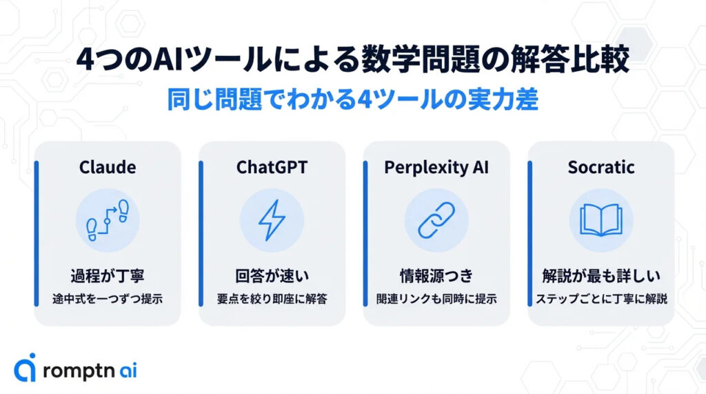 AIツールが実際にどのように問題を解くのか、同じ数学の問題を出して、その実力を比較しました。