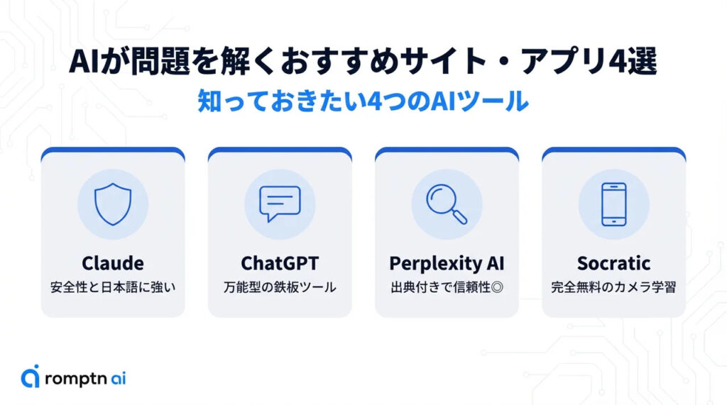 AIが問題を解くおすすめサイト4選から、選び方や注意点、応用テクニックまで詳しく解説しました。