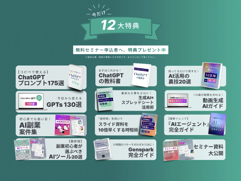 SHIFT AIが開催する無料AIセミナーでは、今だけ限定の無料特典を受け取ることができます。