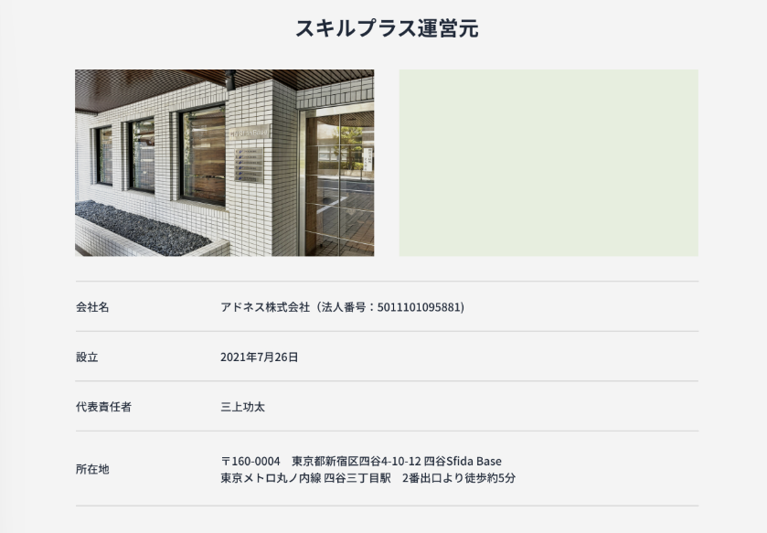 スキルプラスを運営するアドネス株式会社の特定商取引法には以下の内容が明記されています。