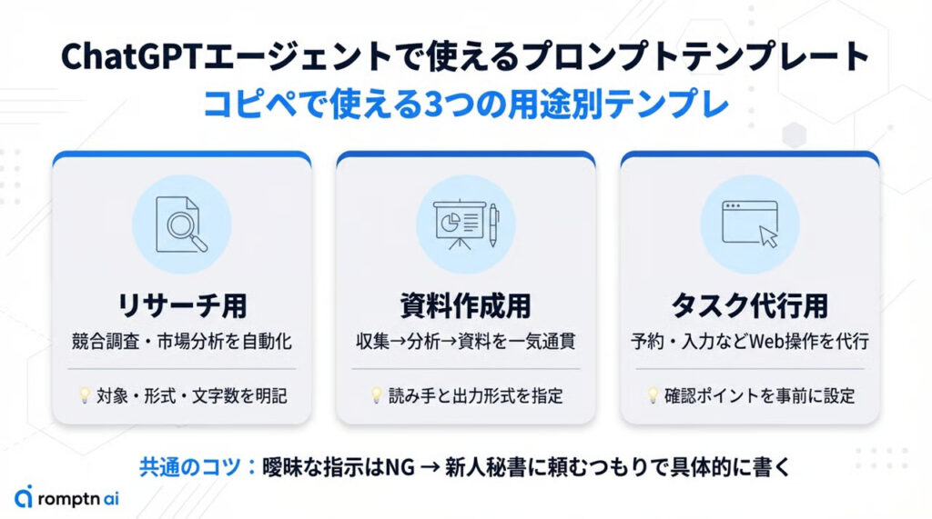 ChatGPTエージェントで使えるプロンプトテンプレート