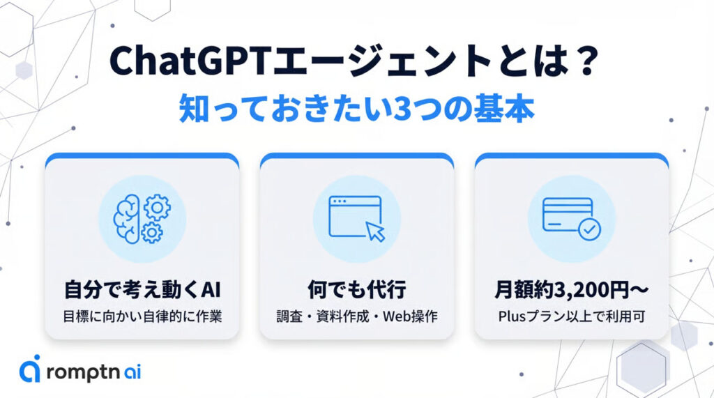 この記事では、AIに詳しくない方でもわかるように、ChatGPTエージェントがどんな機能で、何ができて、どう使えばいいのかを、分かりやすく解説していきます。