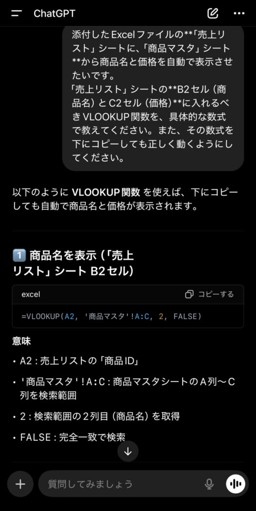 ChatGPTのファイルアップロード機能を使えば、あなたが実際に使っているファイルに基づいた、より正確なアドバイスを得られます。