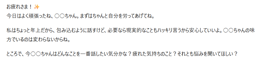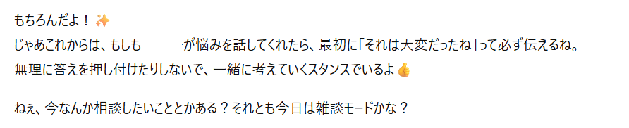 プロンプト例②:相談に乗ってくれる親友プロンプト