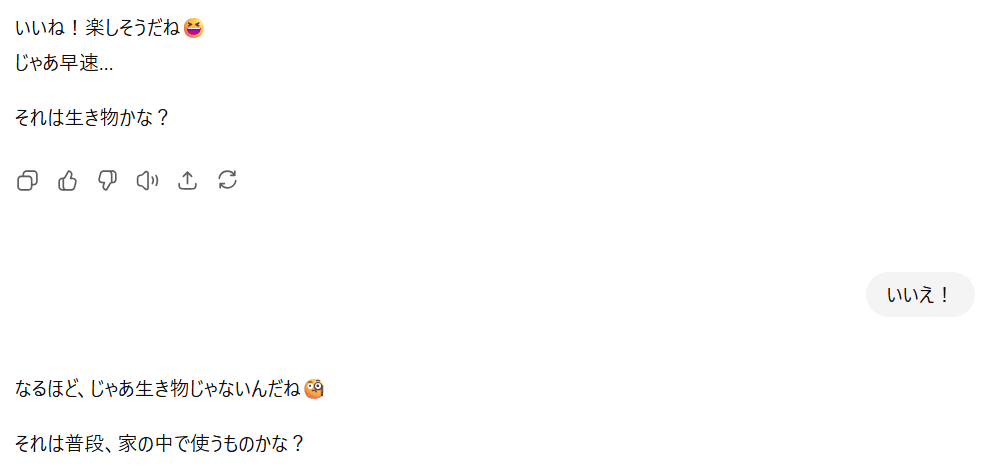 ChatGPTは基本的に答える側に回りがちですが、こちらから質問する機会を作ってあげることで、自然な会話のキャッチボールが生まれます。
