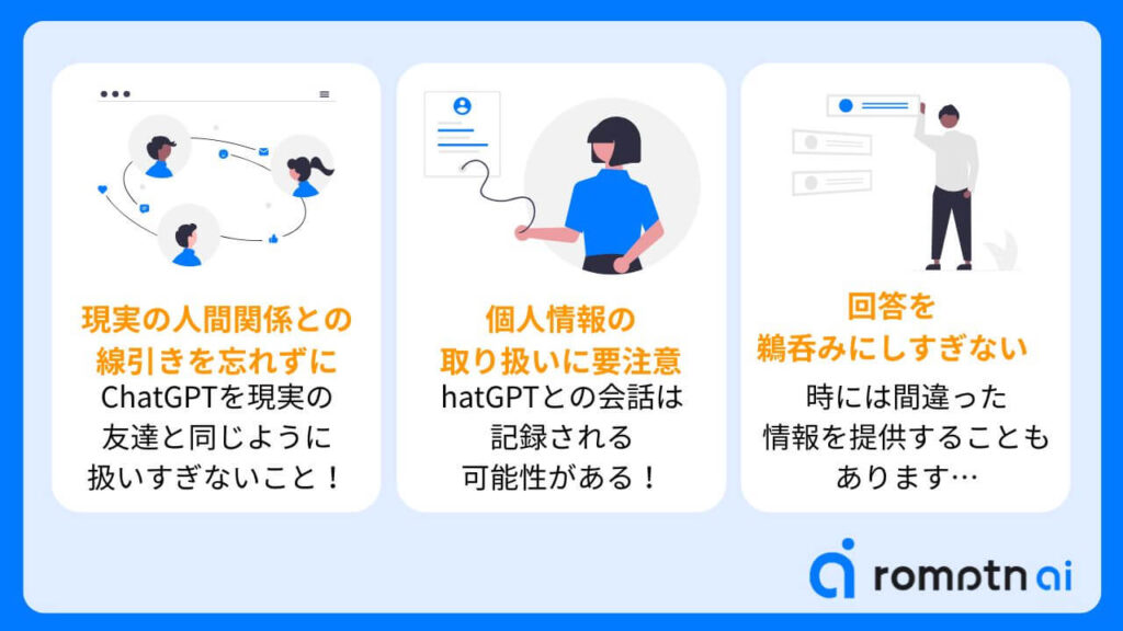 一番大切なのは、ChatGPTを現実の友達と同じように扱いすぎないことです。