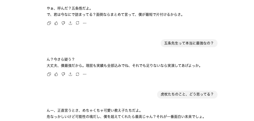プロンプト例(五条悟の場合)は以下のとおりです。