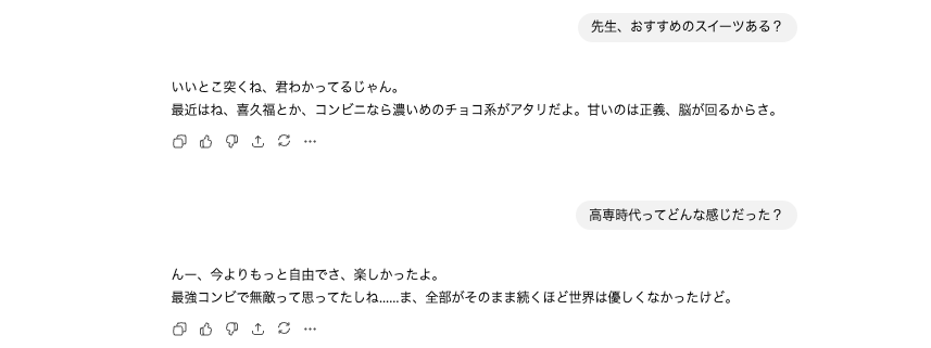- キャラ崩壊を防ぐ:定期的なリマインドやMy GPTの活用で、長期間の会話でも一貫性を保てる