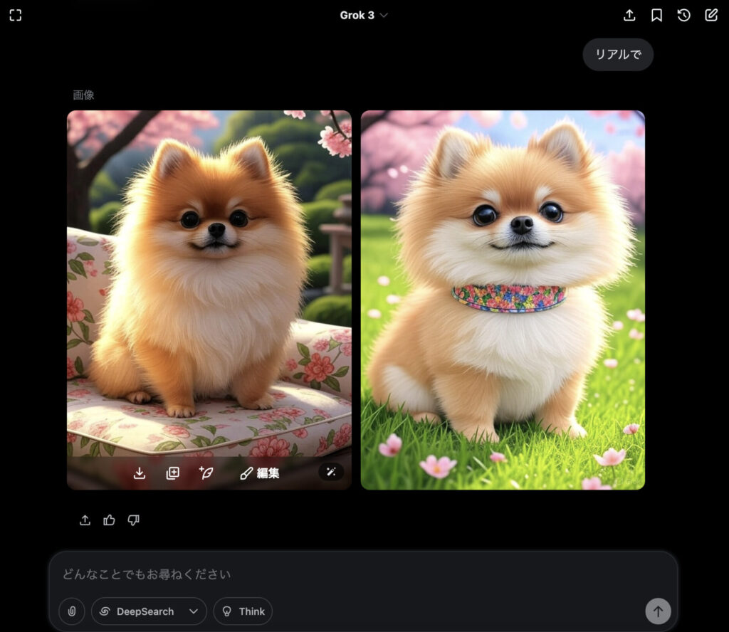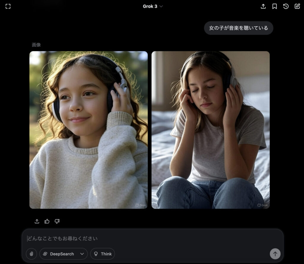 良かった点は、手軽さとスピード感です。XやWeb上からアクセスしてすぐに使い始められ、複雑な設定が一切不要。チャット感覚で画像生成ができ、日本語入力だけで十分という手軽さは、他の画像生成AIにはない魅力でした。