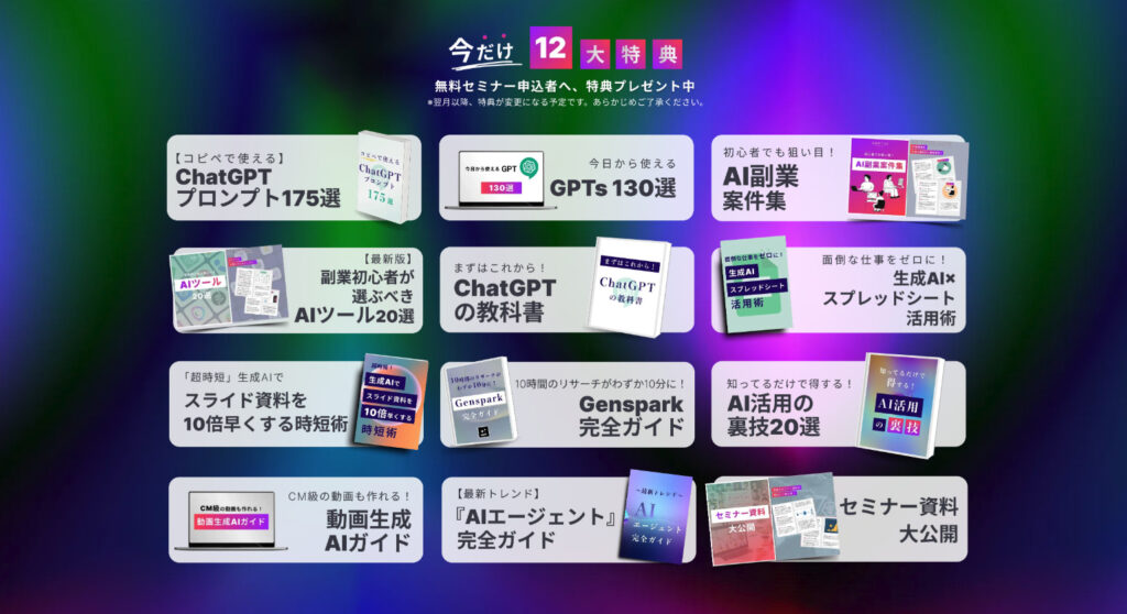 - たった2時間の無料セミナーで会社に依存しない働き方&AIスキルを身につけられる!