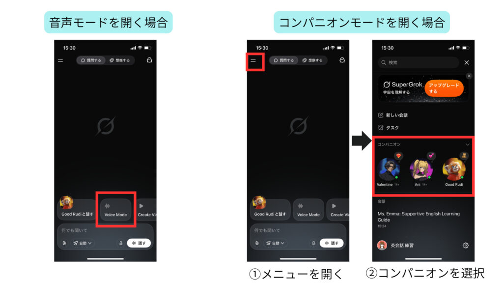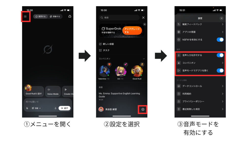 ここからは実際にGrokを使った英会話練習の始め方をご紹介します。