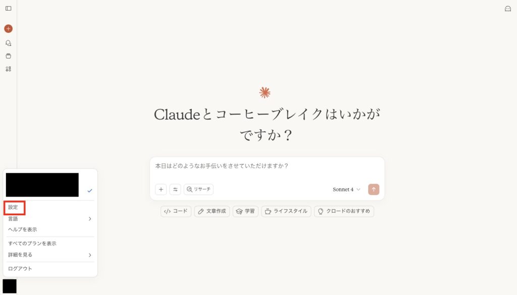 手順②アカウントアイコンから「設定」をクリック
