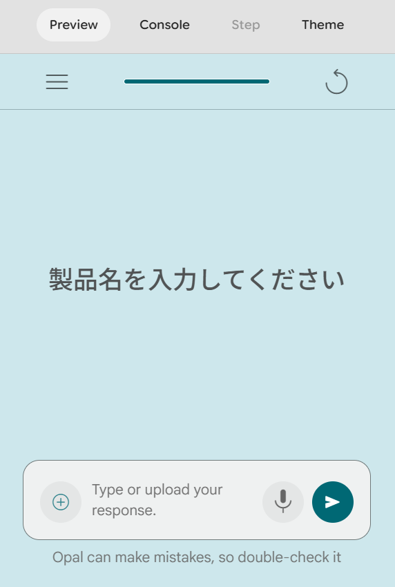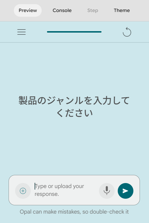 ここでは実際にGoogle Opalを使用していくつかアプリを作ってみましたので生成例をもとに実際どのようなものが作れるのかを解説していきます。今回はどこまでAI自身で考え、ユーザーの希望にそったアプリを生成してくれるのかをテストするために、あえてプロンプトは必要最低限にしてみました。