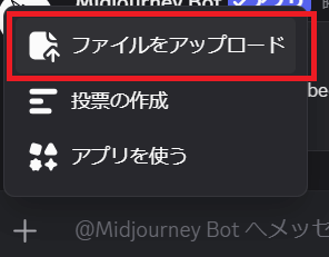 画像読み込み機能を使うには、まずMidjourneyに画像をアップロードする必要があります。