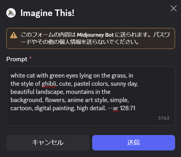 画像URLとテキストプロンプトの間は半角スペースで区切ってくださいね!