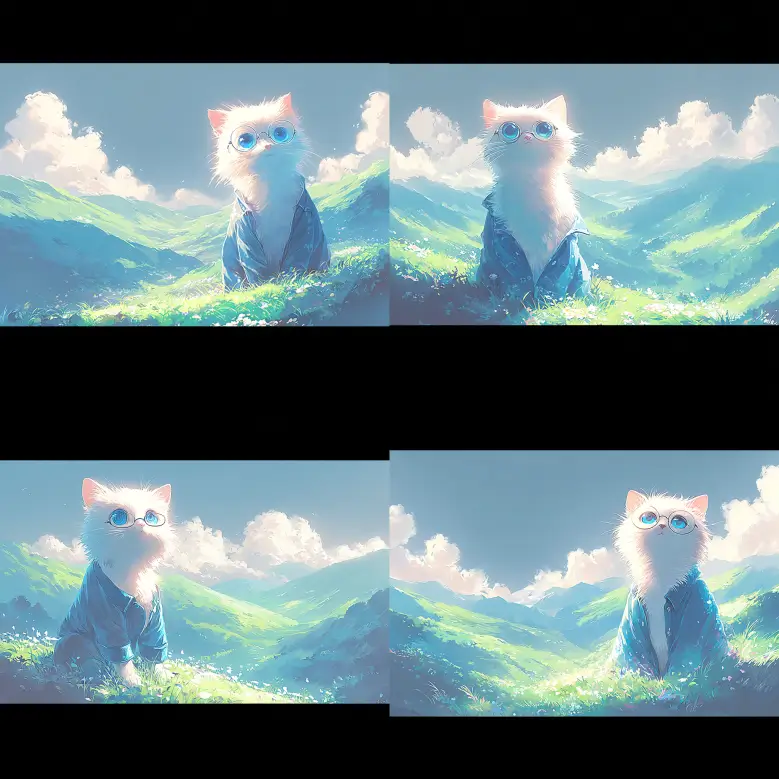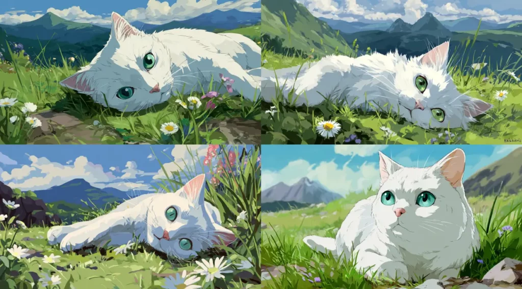 /imagine prompt [画像1URL], [画像2URL] white cat sleeping peacefully on grassland --ar 16:9