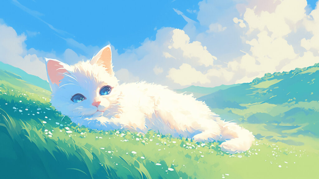 - テキストプロンプト:「草の上で眠っている美しい猫」