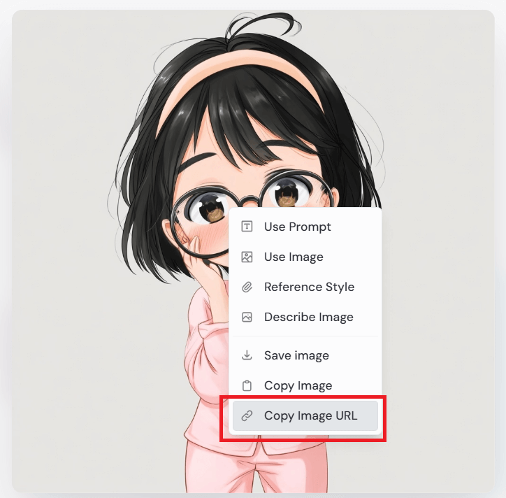 既存の画像のスタイルを参照したい場合に使用します。画像を右クリックして「リンクをコピー」し、そのURLを貼り付けるだけです。