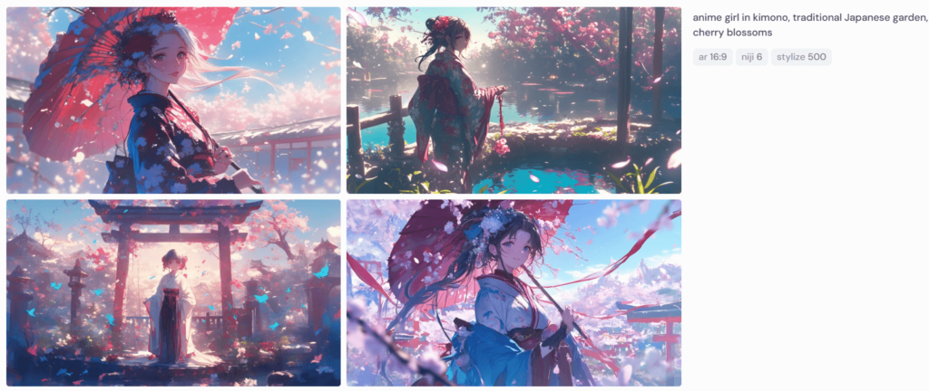 今回は、MidjourneyのNijiモデルについて、基本的な使い方から応用のコツまで、実際の生成画像を交えながら詳しく解説していきます。この記事を読めば、あなたも思い通りの二次元イラストを作成できるようになりますよ!