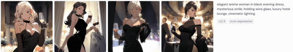 - Niji v6:最新で表現力が高い、プロンプト理解度が向上