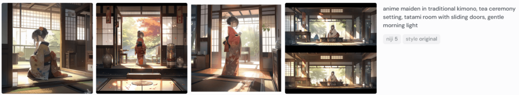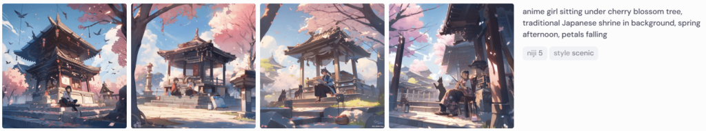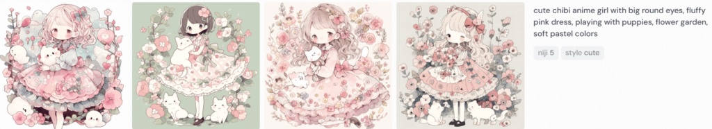 - Niji v5:5つのスタイル機能が使える(Default、Cute、Expressive、Scenic、Original)