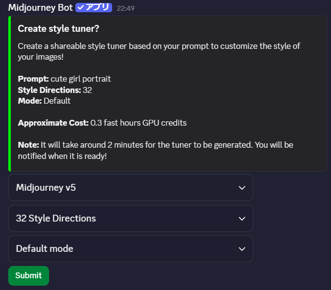 Midjourneyのスタイルチューナーの基本的な使い方