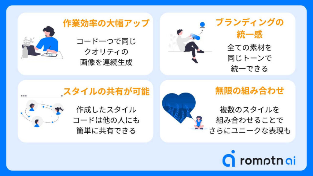 ③スタイルの共有が可能:作成したスタイルコードは他の人にも簡単に共有できるため、チーム作業での画像制作にも最適です。