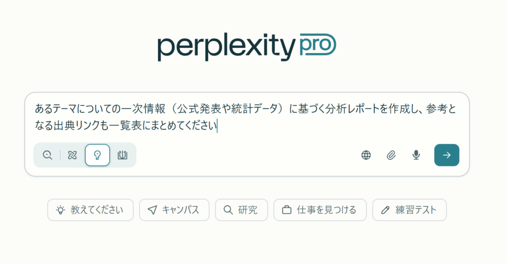 一度に大規模で複雑な処理を行うため、通常の検索よりもリソースを多く消費します。そのため、制限が厳しめに設定されています。 無料版で使用したい場合には、本当に重要な情報収集や複雑な資料作成など、「ここぞ!」という場面で使うようにするのがおすすめです。