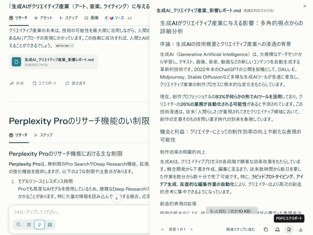 Perplexity Labsで作ってもらった資料をPDFで出力することはできますか?